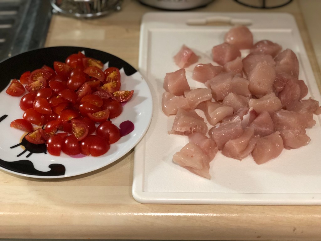 After the chicken and rustic potato wedges have cooked, quickly heat up the tomatoes mix for another four minutes.
