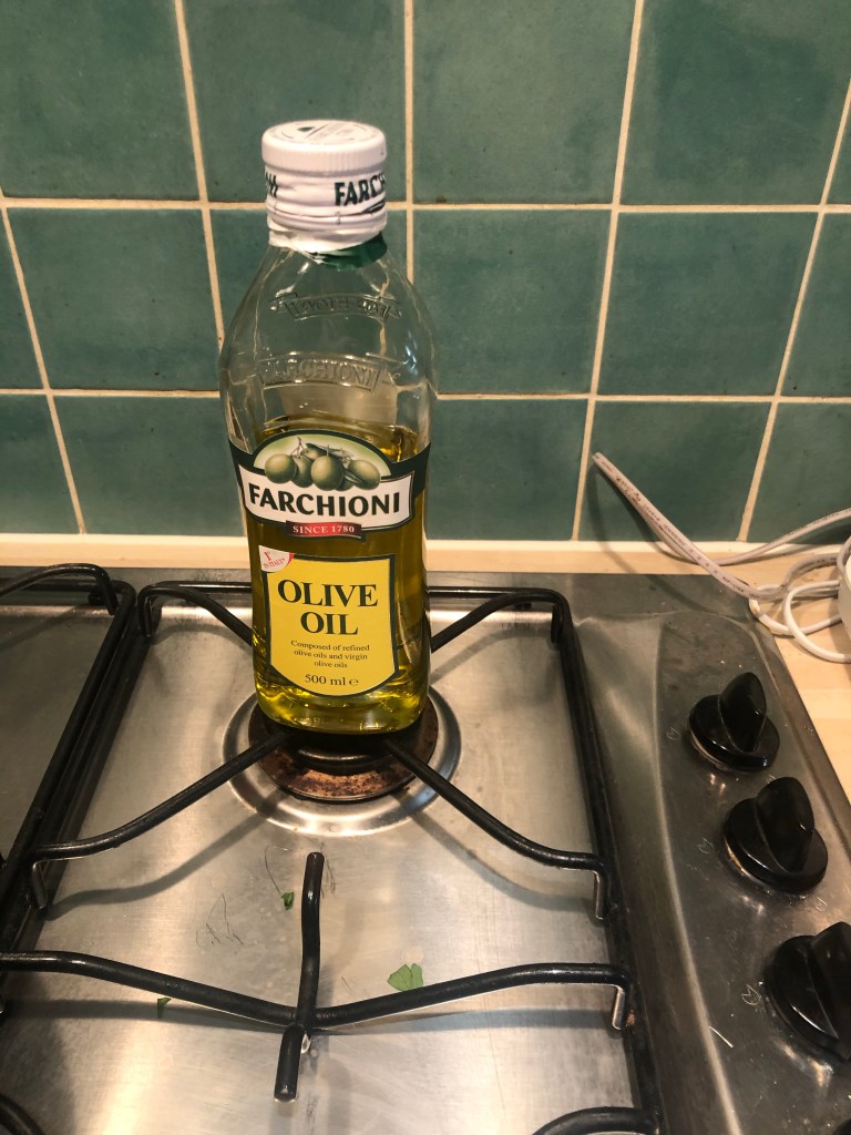 Generous glug of Olive Oil.